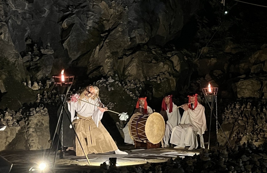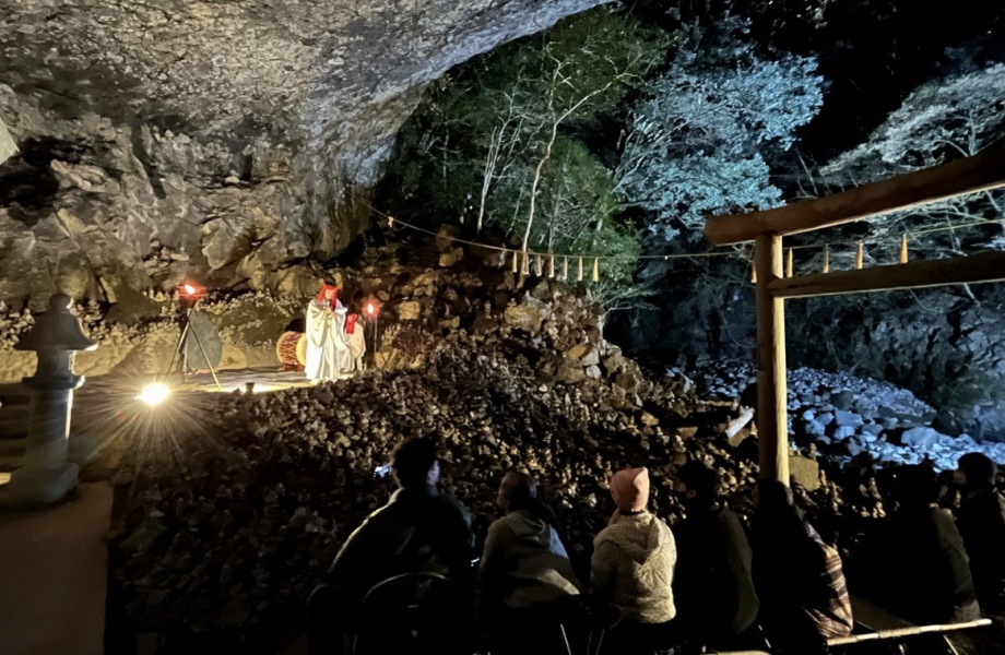 通常は夜は立入ることができない神話の舞台の洞窟の「天安河原」で夜神楽を奉納します。