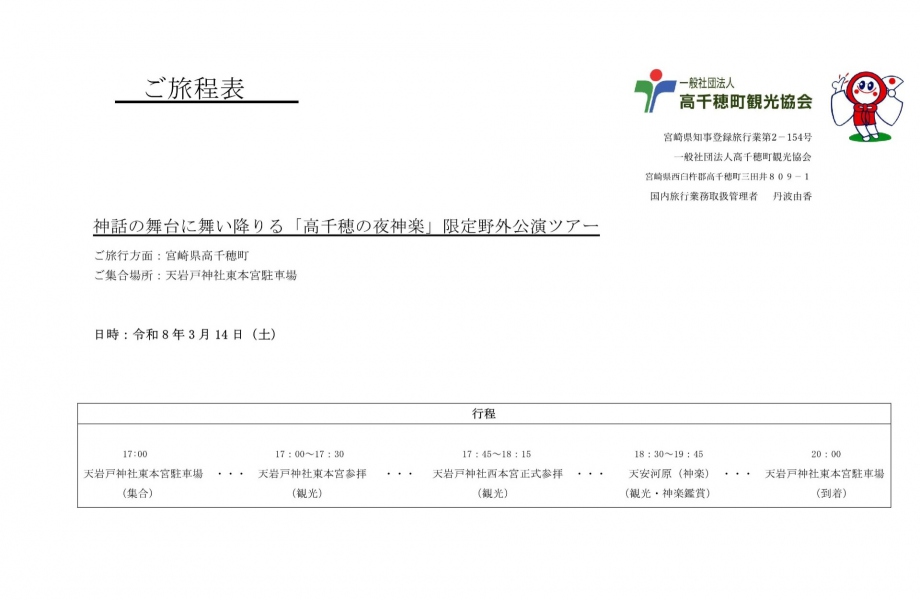 【催行決定】【3月14日】神話の舞台に舞い降りる「高千穂の夜神楽」限定野外公演ツアー