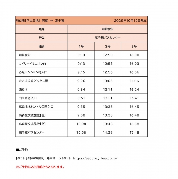 阿蘇駅発 時刻表