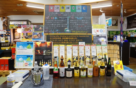 物産館では、各種焼酎の試飲や高千穂の物産品・宮崎県内のお土産品などを、豊富に取り揃えています。