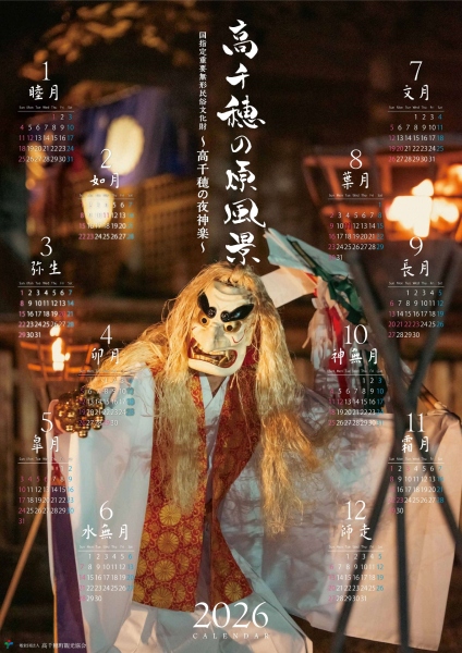 「高千穂の原風景」2026カレンダー 高千穂の夜神楽 B2ポスターサイズ