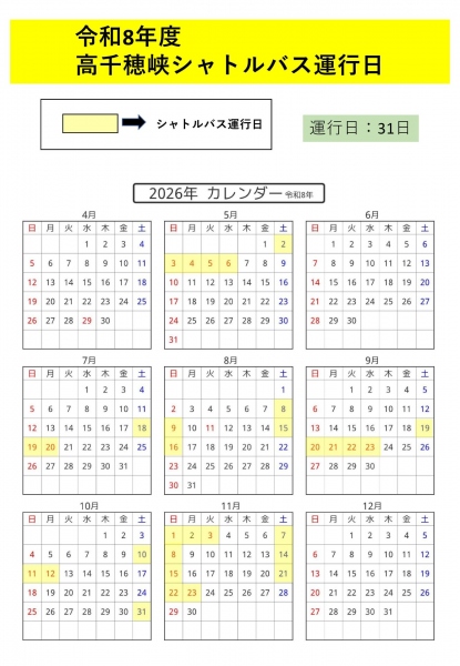 - 【シャトルバス】令和8年度 高千穂峡周辺シャトルバス運行のお知らせ