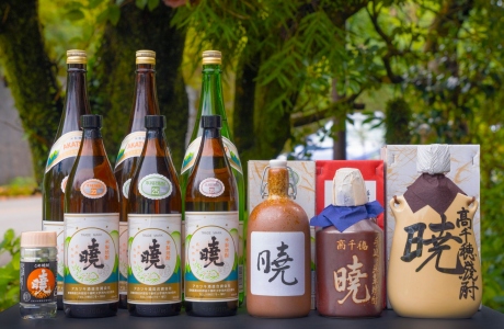 昭和9年創業の老舗が地元産米を使い、全工程をすべて手作業で丹精込めて造りあげる「本格米焼酎暁」飲み口がまろやかでお湯割りや