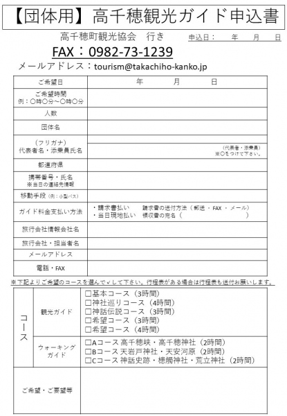 旅行会社様 専用観光ガイドFAX申込
