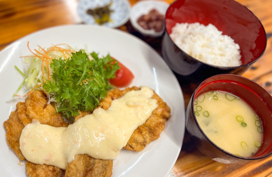 高千穂峡定番の「そうめん流し定食」や「チキン南蛮定食」も人気です。