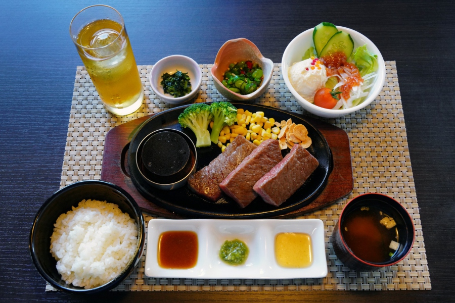 高千穂グルメの代表的存在といえる、高品質で味わい深い「高千穂牛」をお手頃な値段で心ゆくまで堪能できる「高千穂牛レストラン和」。オススメは、目の前でシェフが腕をふるう鉄板焼きコーナー。豪快かつ繊細に調理された高千穂牛は肉汁をギュッと閉じ込め、口に入れるとサッととろけます。