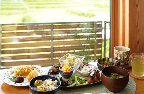 自家製の無農薬・減農薬の野菜、穀物、果実、発酵調味料で作る「野菜プレートランチ」を提供しています。