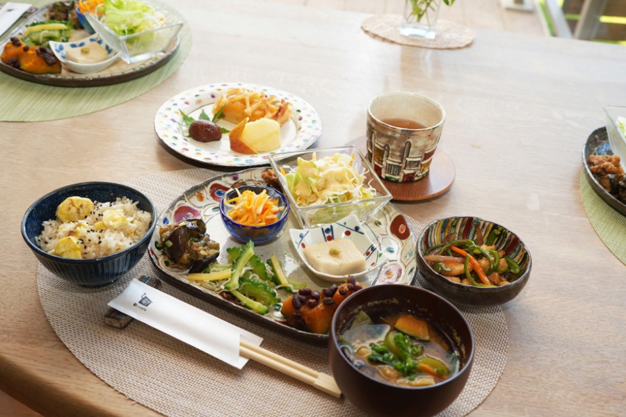 自家製の無農薬・減農薬の野菜、穀物、果実、発酵調味料で作る「野菜プレートランチ」を提供しています。