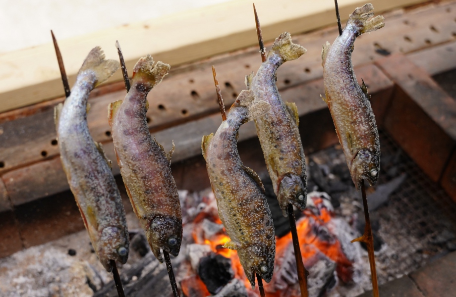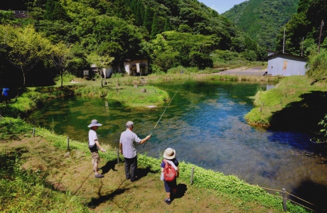 また施設内にやまめの釣り堀もあり、釣った魚はその場で塩焼きにできたり持ち帰りもできます。