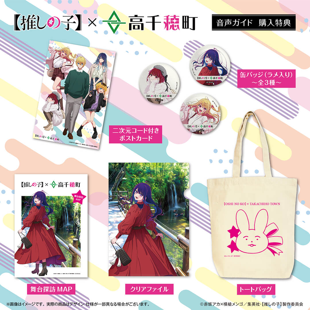 登場を記念して【推しの子】とのコラボが決定しました。【推しの子】キャラとともに観光できる音声ガイドや高千穂町でしか手に入らない限定グッズを販売します!