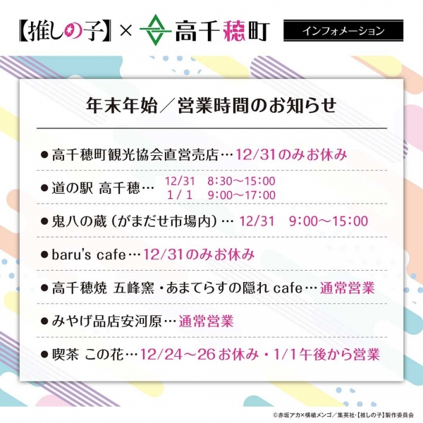 コラボグッズ販売店舗及びノベルティ配布店舗の年末年始の営業のお知らせ